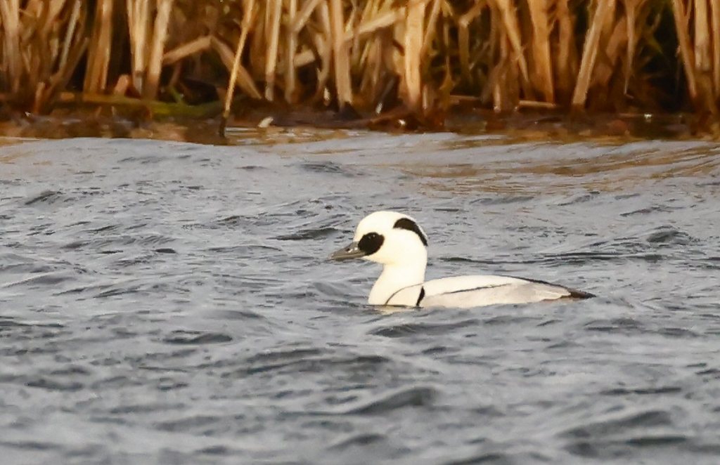 Becoming easier to see as time went by and looking as crisp as winter snow, last week’s drake Smew remained at Clifford Hill throughout the period.