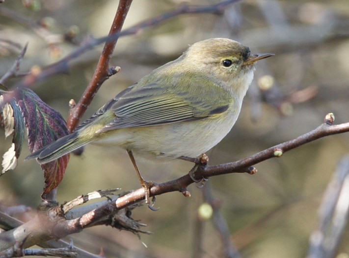 These two photos show the diagnostic emarginated 6th primary of Chiffchaff and its absence in Willow Warbler – not visible in the field, of course – but in the image of Chiffchaff the short first primary is tucked away and not visible and the second primary is barely visible behind P3.