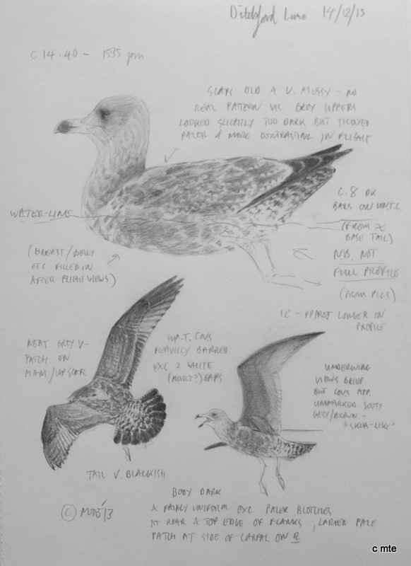 Probable second-winter American Herring Gull, Ditchford GP, 14th December 2013, sketches by Martin ElliottTail pattern of probable second-winter American Herring Gull, Ditchford GP, 14th December 2013, sketch by Martin Elliott