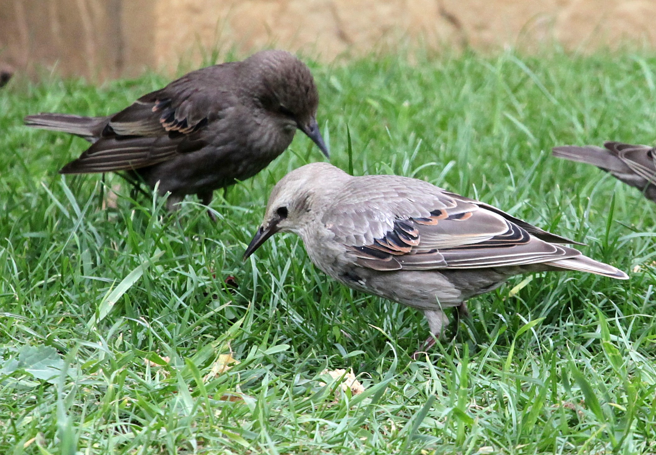 Phil Jackman forwarded these images of a leucistic juvenile Starling present in his Kettering garden this weekend. While generally uncommon, leucism (really a lower concentration of melanin) in juvenile Starlings has been recorded on numerous occasions and invites confusion with juvenile Rose-coloured Starling which, however, has a largely yellow bill (especially at the base) and pale lores.