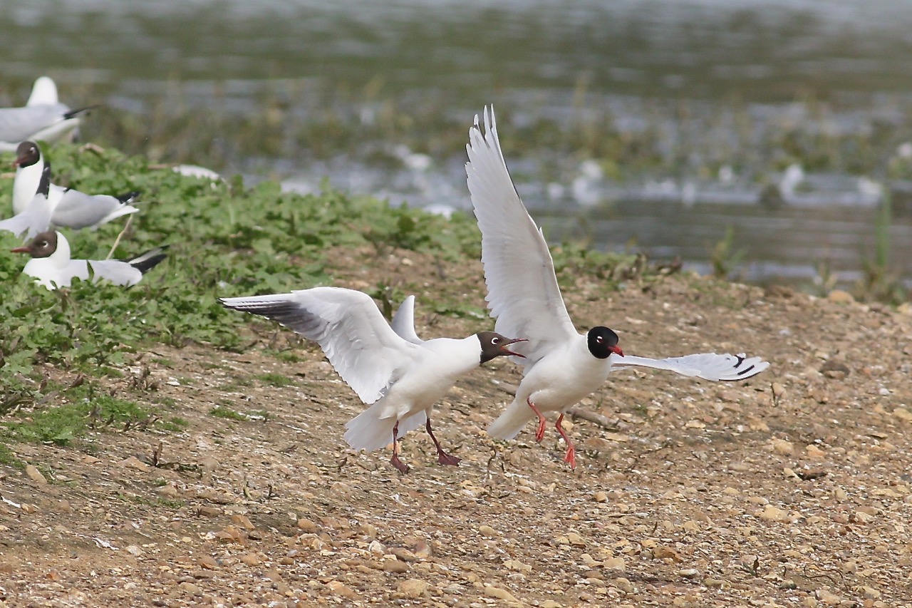 accompanied nine Dunlins at Clifford Hill GP on 9th. Smaller numbers of Dunlin included one showing likely characteristics of the race arctica at Stanwick GP on 9th-10th, two at Summer Leys on 13th and one at Hollowell Res on the same date with three there the following day and one on 15th, while the only Common Sandpipers were singles at Summer Leys on 9th-10th and 14th, three at Stanford Res on 11th and one at Clifford Hill GP on 15th. The latter site also hosted a Greenshank on the same date. Two Redshanks remained throughout at Summer Leys, where the long-staying second-summer Mediterranean Gull remained in the Black-headed Gull colony. Another Mediterranean Gull – this time a first-summer – was in the Stanwick Black-headed Gull colony from 9th to at least 14th, while the same site produced a very good candidate for a second-summer Azorean Gull on 9th-10th. With perhaps two other possible Azorean Gulls recorded at this site in the past year or so these occurrences beg the question just what is going on with the Yellow-legged Gull complex right now and what is the true origin – both genetically and geographically – of these birds? A second-summer Yellow-legged Gull observed mating with, and apparently paired to, an adult Lesser Black-backed Gull at Stanwick this week will add fuel to the fire for proponents of the hybrid theory but observers of the ‘Azorean’ candidate say it’s bang on the money and are confident it is not a hybrid … Five more Yellow-legged Gulls were also at Stanwick on 9th – the same date that a first-summer was at Daventry CP, while these same two sites recorded Arctic Terns on 12th, numbering eight and one respectively.