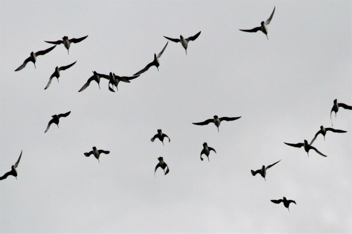 What Black-tailed Godwits lacked in number of records they made up for in numbers of birds. Apart from singles at Stanford on 24th April and Ditchford GP on 7th May, a flock exceeding three hundred flew north-west near Scaldwell on 28th April while, not on quite the same scale, Bar-tailed Godwits also appeared in respectable numbers. The largest flock comprised at least thirty-two in flight over Summer Leys on 5th May in addition to five on the ground there on the same date.