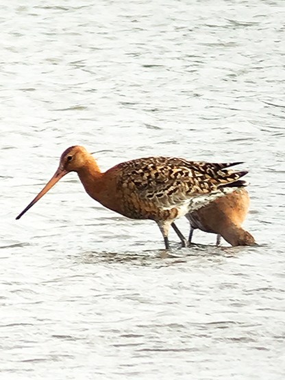 The third was watched flying south-west over Thrapston GP on 3rd.The flow of southbound Icelandic Black-tailed Godwits continued with singles at Stanford Res on 1st, 2nd and 6th, three at Thrapston GP on 3rd, two at Pitsford Res on 4th with three there the following day and one on 7th, two at Stanwick GP plus six at Summer Leys on 5th and one again at Stanwick on 7th.