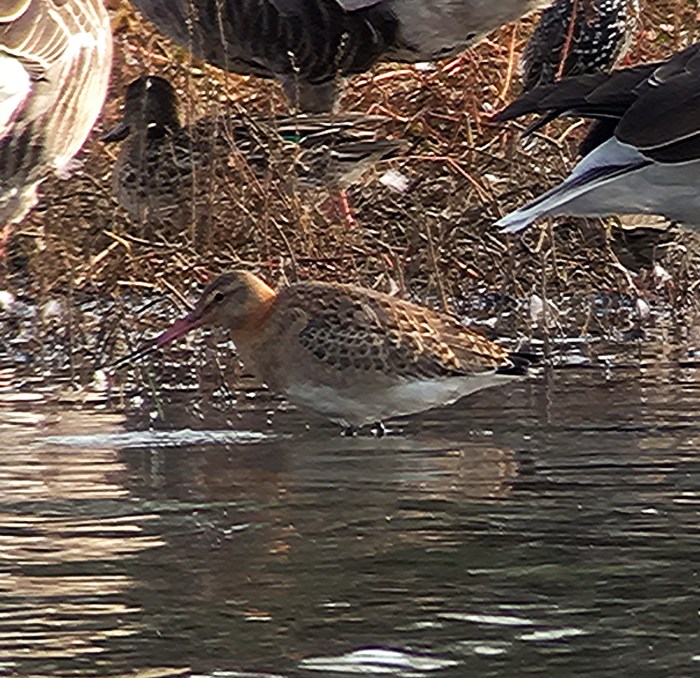 The raptor count was down this week, with single fly-over Merlins at Kingsthorpe (Northampton) on 21st and at Stanford Res on 27th and the county fared little better for waders, with single Black-tailed Godwits at Pitsford Res on 22nd and at Stanford Res on 27th, while last week’s Knot stayed at Hollowell Res until 22nd.