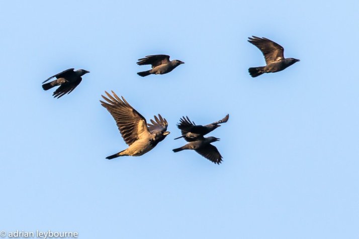 Two Short-eared Owls remained at the much favour’d locality of Neville’s Lodge (Finedon) all week, one was still at Lilbourne Meadows on 23rd and another was watched being mobbed by Carrion Crows over Ditchford GP’s Irthlingborough Lakes & Meadows on 29th. Which brings us neatly on to the rarest bird of recent times, Hooded Crow, one of which was seen in flight with Jackdaws, just beyond the northern boundary of Summer Leys on the same date. This is only the second county record this century, following one at Alderton in November 2018, which prompted this status review.