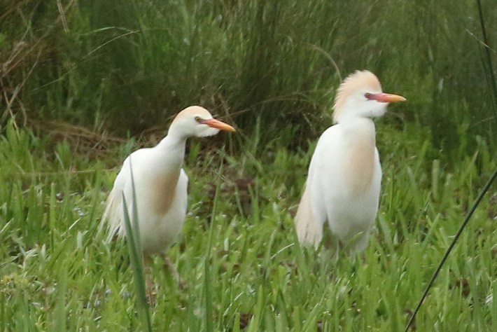 The period’s weather fell under the influence of a westerly airflow, which brought intermittent sunshine and showers and, as it happens, very little change to the local birdscape. Topping the charts this week were three Cattle Egrets at Stanwick, all resplendent in summer plumage … and one up on last week’s total.