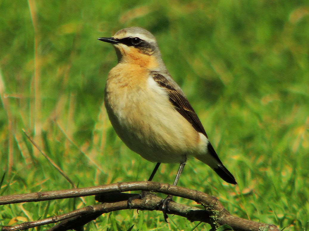 First-summer male Northern Wheatear, Clifford Hill GP, 11th May 2019 (Mike Alibone). Brownish wings with pale fringes to coverts, along with blotchy, not clean black, ear coverts age this individual. Rich orange throat and upper breast, plus orange/buff-suffused underparts, bulky appearance and upright stance when standing and feeding, strongly suggest Greenland race, leucorhoa.Female Northern Wheatear, Clifford Hill GP, 11th May 2019 (Mike Alibone). Showing similar features to the male in terms of richness and extent of throat and colour of underparts. Upright stance and longish legs show well here.Female Northern Wheatear, Clifford Hill GP, 11th May 2019 (Mike Alibone). Same individual as above. Note diffuse dark lores.Female Northern Wheatear, Clifford Hill GP, 11th May 2019 (Mike Alibone). A different female, with sharply demarcated, solid black lores.Female Northern Wheatear, Clifford Hill GP, 11th May 2019 (Mike Alibone). Same individual as above, with underparts strongly lit by sunlight. Very long primary projection is again a good pointer toward leucorhoa.