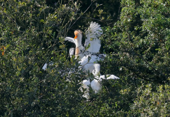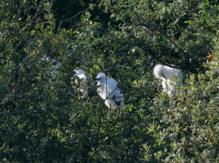 Looking as if they are now on the verge of vacating their nest at Ringstead GP, the four juvenile Cattle Egrets were showing a little more bravado, crashing around in the bushes of their island home, while the three adults continued to feed at nearby Stanwick. Meanwhile, a Great Egret was present again at Pitsford on 2nd.