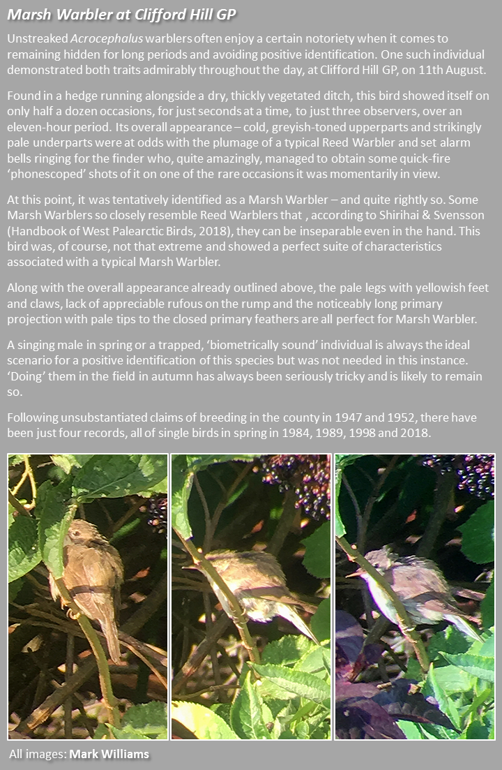 With perhaps no more than half a dozen breeding pairs in the UK now, Marsh Warbler will always be a difficult bird to catch up with in Northants but at least for some, Clifford Hill GP delivered this week.