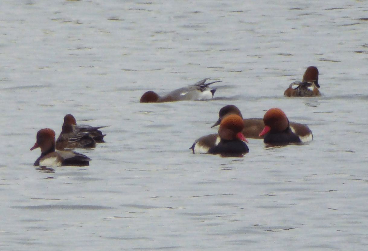 Only time will surely tell but it’s looking like at least seven Pink-footed Geese have opted for Hollowell Res as a favoured wintering area this year and if the female Ruddy Shelduck follows last year’s tack she, too, looks set to remain there into the winter months. Another Pink-footed Goose was seen flying west with a sizeable flock of Greylags over Ecton SF on 30th. This week also saw the arrival of a number of Red-crested Pochards at three localities, with five visiting Summer Leys LNR on 27th, eight at Pitsford on 28th increasing to fifteen the following day and at least eleven still present on 30th. A drake was also at Stanwick GP on the last of these dates.