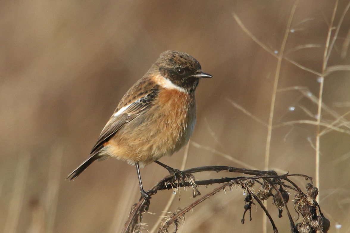 After neither sight nor sound at the locality for several weeks, a Bearded Tit was heard at Stortons GP on 20th. It seems the installation of a grit-tray in the reedbed, designed to keep them there, seems to have had the opposite effect. Sod’s law, as they say … Not so difficult to come by, though, were wintering Stonechats, which were prominent at six sites in all, with a maximum count of five at Ditchford GP on 19th.