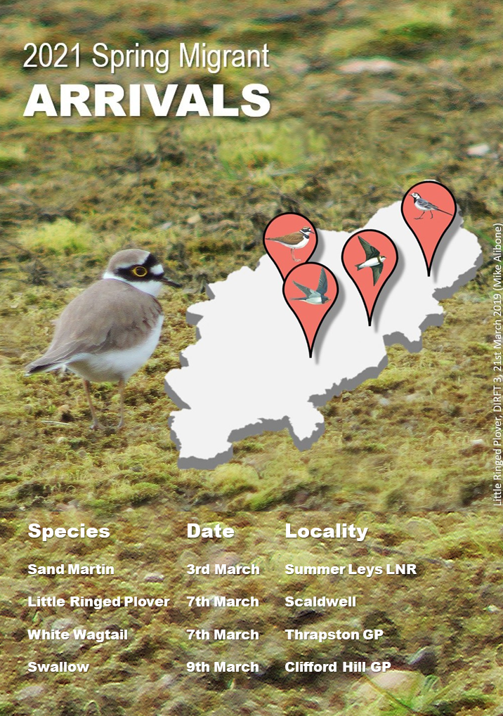 So, more on that Little Ringed Plover touched on above. A single call on a nocmig recording device, at 00.03 hours on 7th was all it took to make its way into the record books as Northamptonshire’s earliest ever spring record, beating the previous earliest, which was on 10th March 1983. Now, imagine if it had been four seconds earlier … Following this one, another was seen flying around the new workings at Earls Barton GP on 9th.