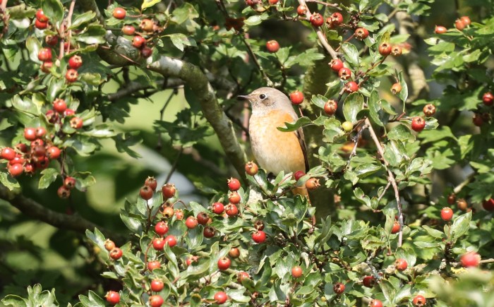 And we begin an eclectic mix of passerines with last week’s early Redwing still at Stanford on 23rd, this site also top of the leaderboard for Common Redstarts, which have been found at an impressive thirteen localities this week. Twelve birds were trapped and ringed at Stanford between 24th and 27th, while maximum counts of birds seen elsewhere are as follows: four at Blueberry Farm, Maidwell, three or four at Braunston, threes at Harrington AF and at Stanford on Avon, twos at Duston and Honey Hill, one or two at Hinton AF, and singles at Hardingstone GP, Lamport, Lilbourne Meadows LNR, Stortons GP and Welford Res.