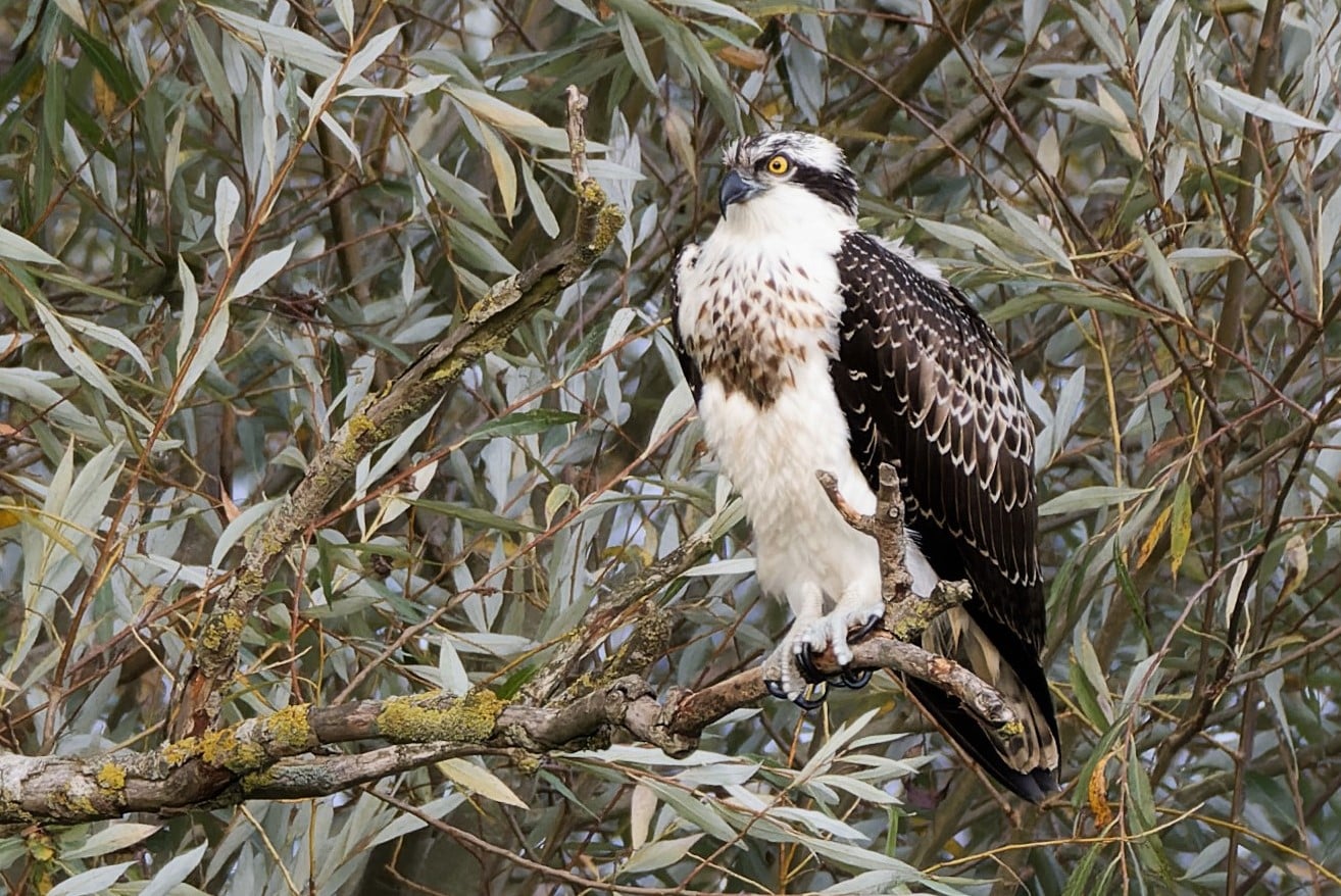 Which brings us neatly to the long-staying Osprey, which has now been in the Nene Valley, between Billing GP and Summer Leys, since 11th October. Looking settled, it has recently been favouring the stretch of river between White Mills Marina and Earls Barton GP’s Hardwater Lake – and it appears almost fearless, choosing to hunt by plunge-diving from trees along the river bank, rather than soaring and hovering over adjacent open bodies of water. In so doing, it has been quite approachable, offering superb views as well as great photographic opportunities.
