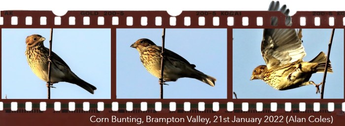 Once again, the Black Redstart remained at Borough Hill throughout, Stonechats were thinly distributed this week with birds at Ditchford, Upton CP and Hollowell, with a maximum of six at the latter site on 28th. And it looks as though interest in Hawfinches is now running at a low ebb, with just one seen at the much favoured site of Blatherwycke Churchyard on 23rd. At least one Corn Bunting hung on in the Brampton Valley, between Cottesbrooke and Hanging Houghton, being seen on 24th and 28th.