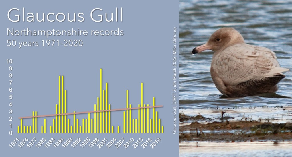 Arguably as smart, single adult Mediterranean Gulls showed up at Daventry CP on 24th and at Summer Leys the following day, while the week’s only Yellow-legged Gull was, once again, an adult at Pitsford on 21st.
