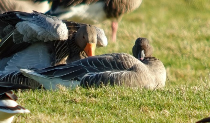As we near the end of February, it’s turned out to be a locally lean winter for grey geese. Apart from three White-fronts at Stanford Res on 2nd December last year, plus a smattering of odd Pink-footed Geese, there’s been no real sniff of any. This week, one of the latter species joined the Greylag flock at Lilbourne Meadows NR on 19th but was not present subsequently.