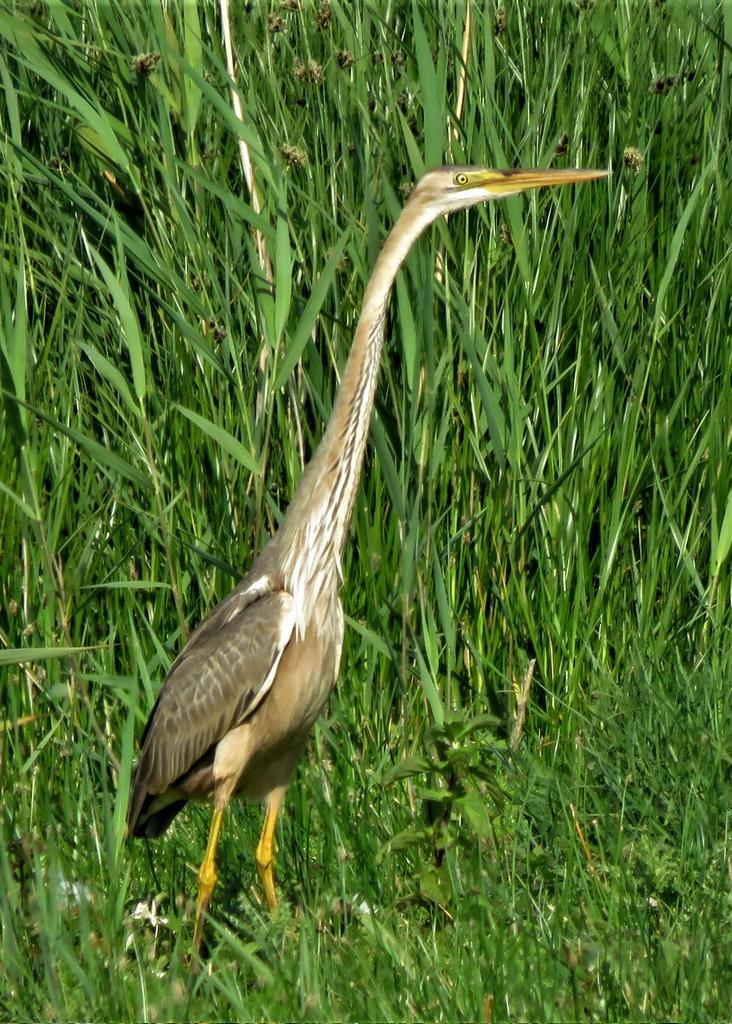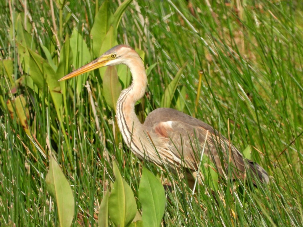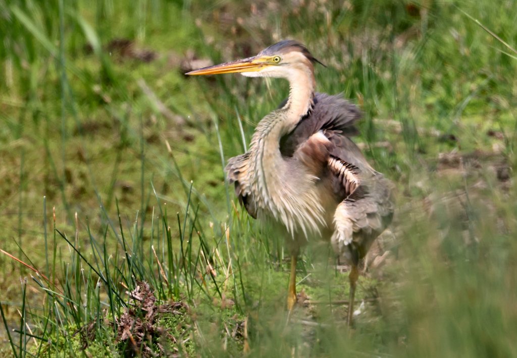 Once again, though, it was good ol’ Summer Leys which delivered the period’s best birds. With the previous week’s flyover Purple Heron, two days before the weekend, on 8th, there it was again on 10th – this time on terra firma, considerately choosing the Scrape as its favoured feeding area. It went on to spend the next four days there – more in than out of the reeds – but with patience, or just plain good luck and timing, local, and some not so local, birders connected and went away happy.