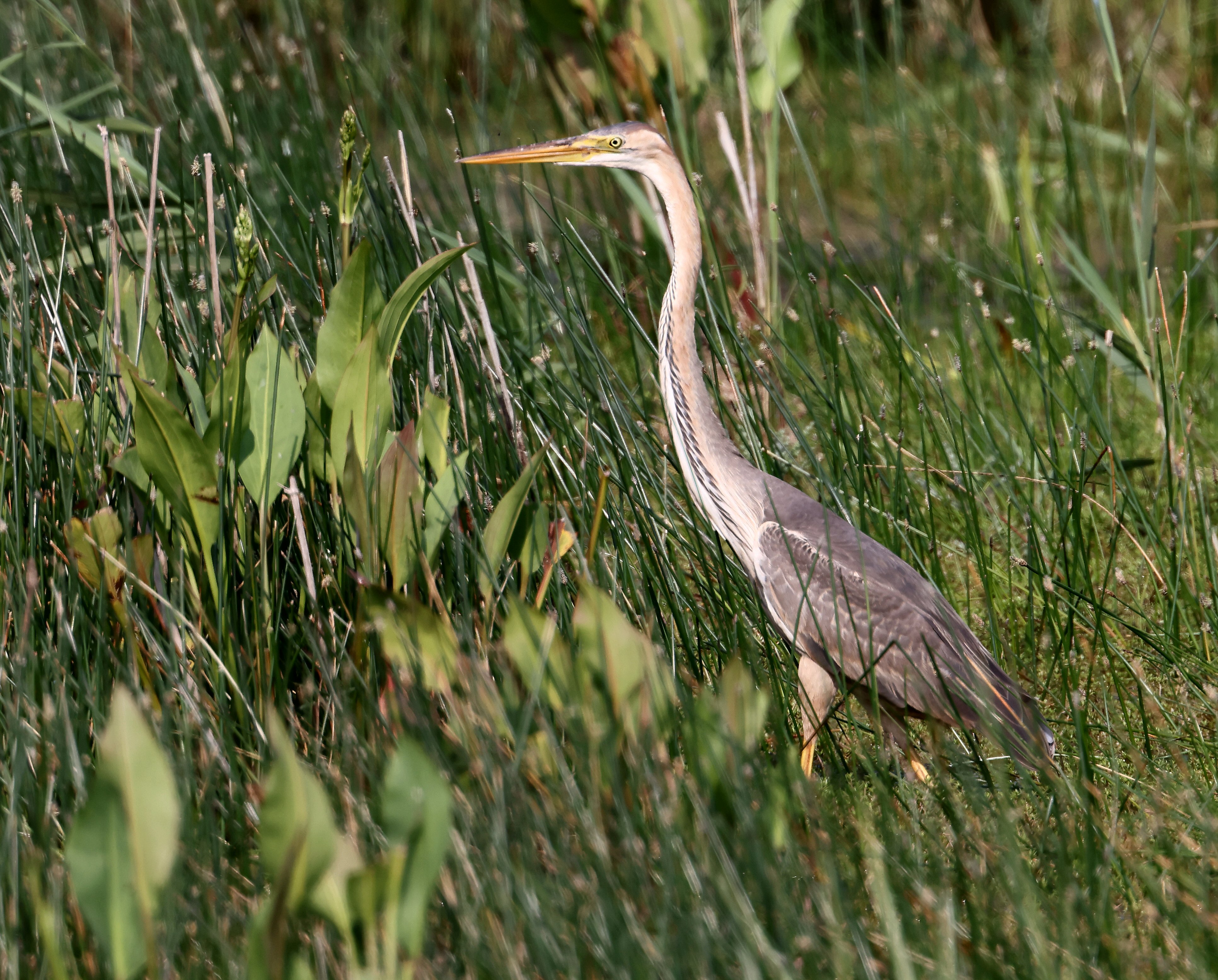 Once again, though, it was good ol’ Summer Leys which delivered the period’s best birds. With the previous week’s flyover Purple Heron, two days before the weekend, on 8th, there it was again on 10th – this time on terra firma, considerately choosing the Scrape as its favoured feeding area. It went on to spend the next four days there – more in than out of the reeds – but with patience, or just plain good luck and timing, local, and some not so local, birders connected and went away happy.