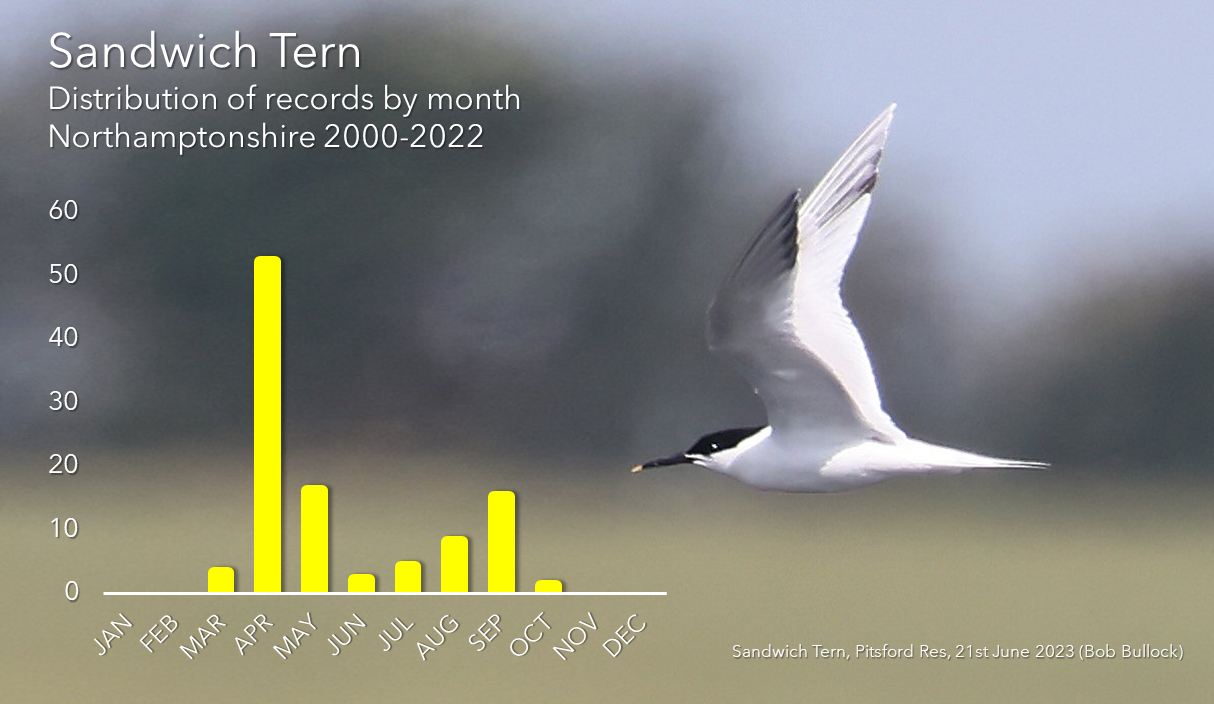 From there on, the focus was clearly on the latter site, where a surprising total of five Yellow-legged Gulls was reported on 17th, ahead of two seemingly unseasonal Sandwich Terns, which lingered long enough for those so inclined to catch up with them during the morning of 21st. Late to the party and hot on the heels of this year’s only ones to date – those two short-stayers at Thrapston GP only eight days previously – they represent one of the very few June records this century.