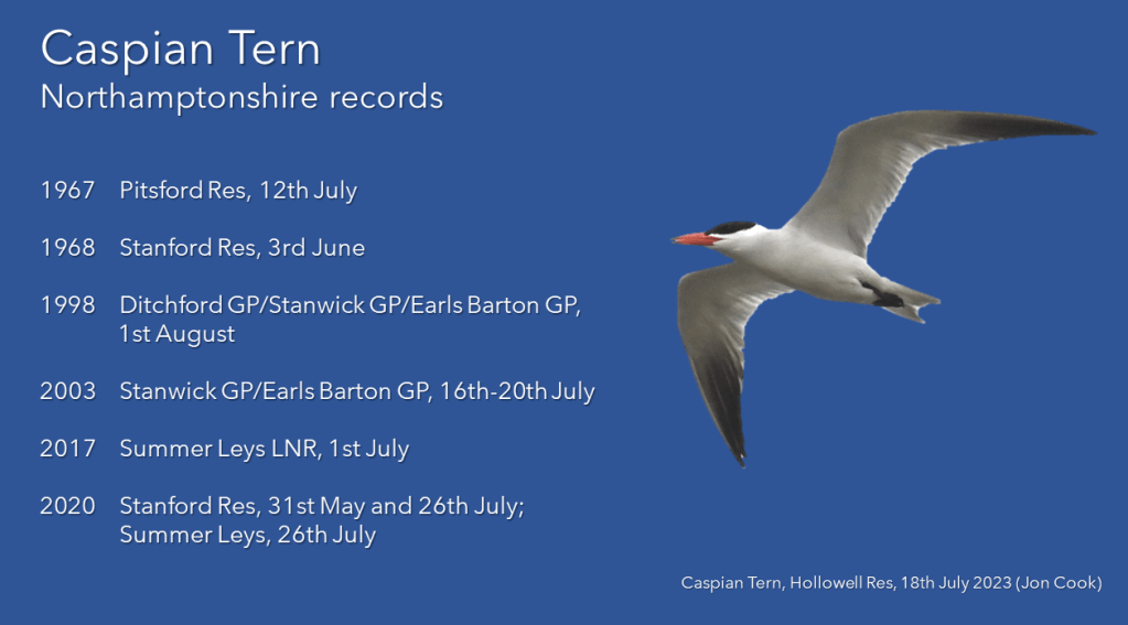 While the unseasonal, topsy-turvy weather conditions persisted throughout the week, many eyes became focussed on a certain east coast Giga-rarity but Northants produced its own Mega in the shape of a fine adult Caspian Tern.