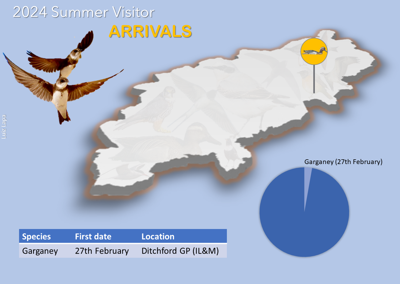 These were upstaged somewhat by the appearance of a Grey Plover on the Main Lake at Summer Leys on 28th, where it remained mobile on 29th. Although annual, the number of Grey Plovers visiting the county in recent years appears to have dropped significantly.