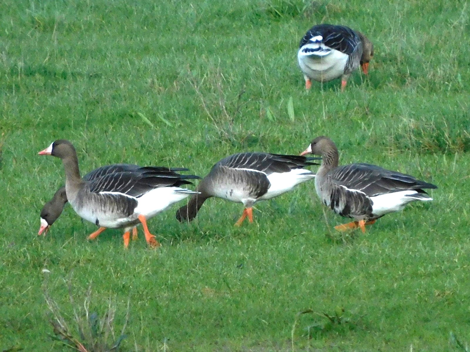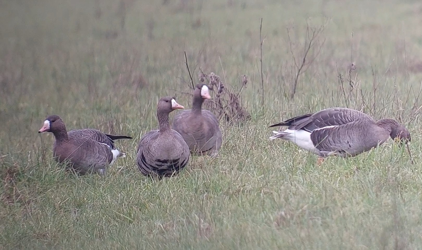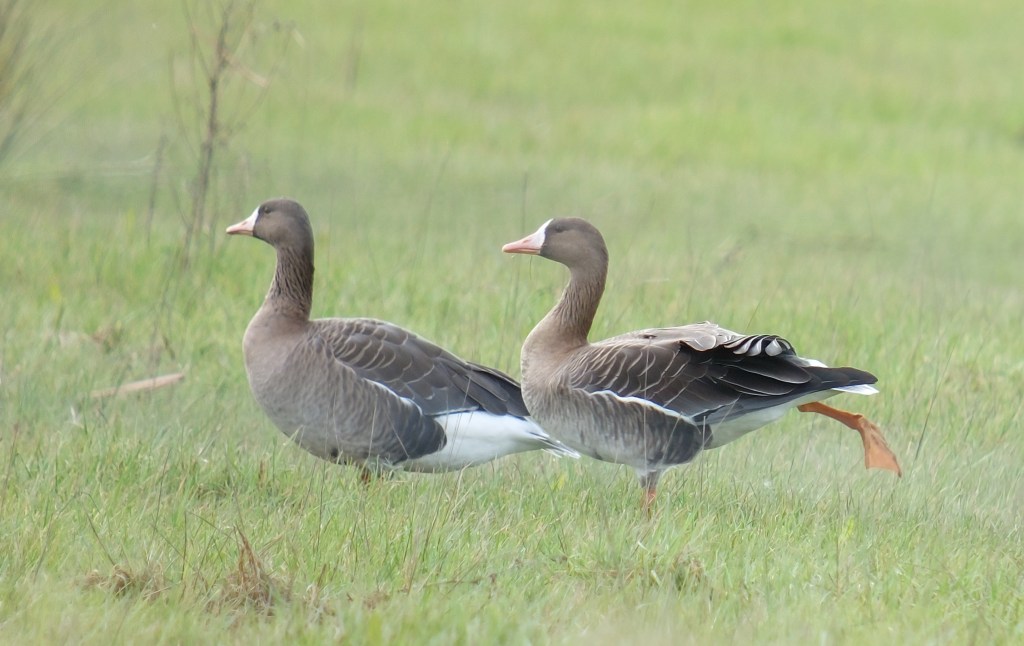 Far less likely to pique the majority interest, though, were two Barnacle Geese found at Pitsford on 28th, subsequently seen flying west over nearby Hanging Houghton early the following morning. Though overwhelmingly likely to be feral, unlike the birds themselves, the status of this species in the county is anything but back and white. A solitary Pink-footed Goose found at Hollowell Res on 27th is also not beyond the feral but birds turning up locally are usually given the benefit of the doubt and this one may well be the individual which has been doing time at Stanford Res, mainly on the Leicestershire side of the border. Unsullied and beyond question on origin is the party of four White-fronted Geese that have yo-yoed back and forth between Thrapston GP’s Titchmarsh LNR and nearby Wadenhoe Meadows since their discovery at the former site on 4th March. They were still present on 24th.