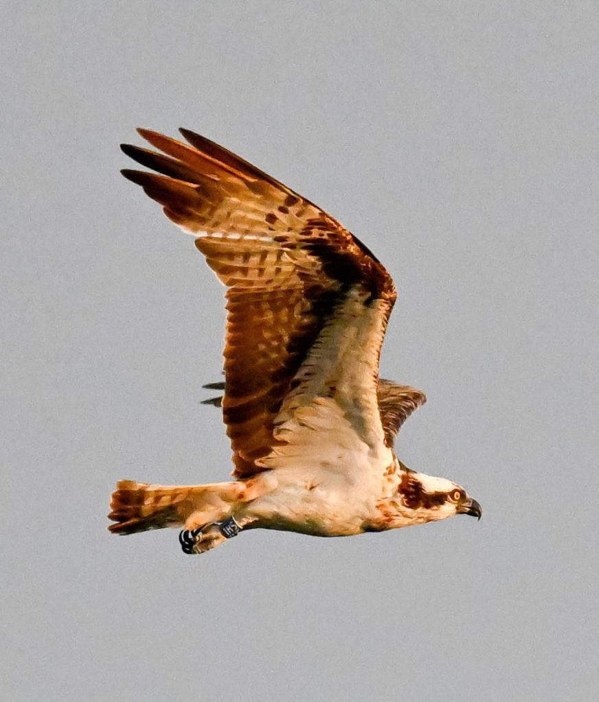 But once again, raptors were putting on a show for many a local birder, with Ospreys more or less a daily fixture at Pitsford, where fishing and loafing in trees became almost routine. Up to three were present there throughout the week. Elsewhere, one featured daily at Stanford between 10th and 15th, Thrapston produced one on 12th and 14th, one flew over the Brampton Valley on 10th and one was at Ravensthorpe on 13th. At least two of those at Pitsford bore rings enabling their history to be traced. Of three there on 14th, one, ‘355’, fledged from a nest in Rutland in 2021, returning on 24th April this year prior to being seen regularly at Summer Leys during May. Another of the trio, ‘3AY’ is a five year old male – also from Rutland – which has not yet been recorded as breeding; it also visited Hollowell on two dates in April and Stanford on 17th July. One of this week’s Stanford birds, ‘1H5’, was a male ringed as a nestling at Rutland on 25th June 2022, first returning to Rutland on 3rd June this year.