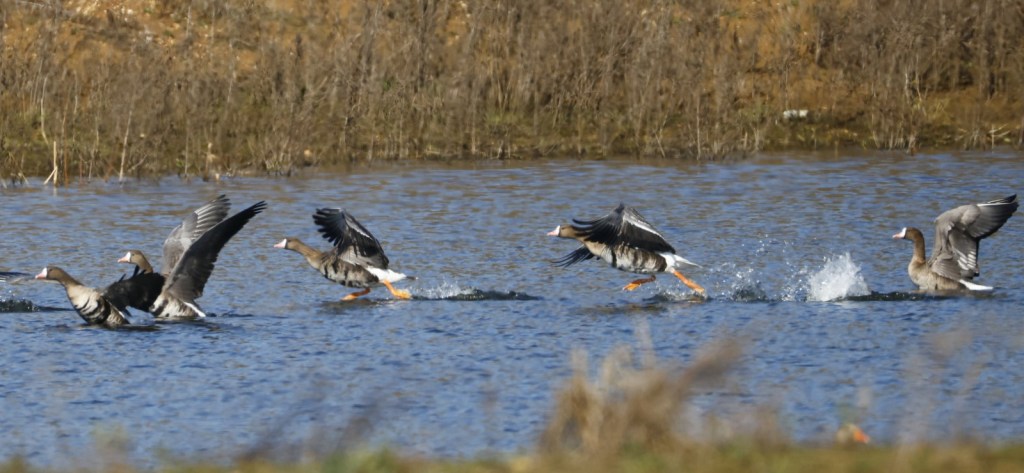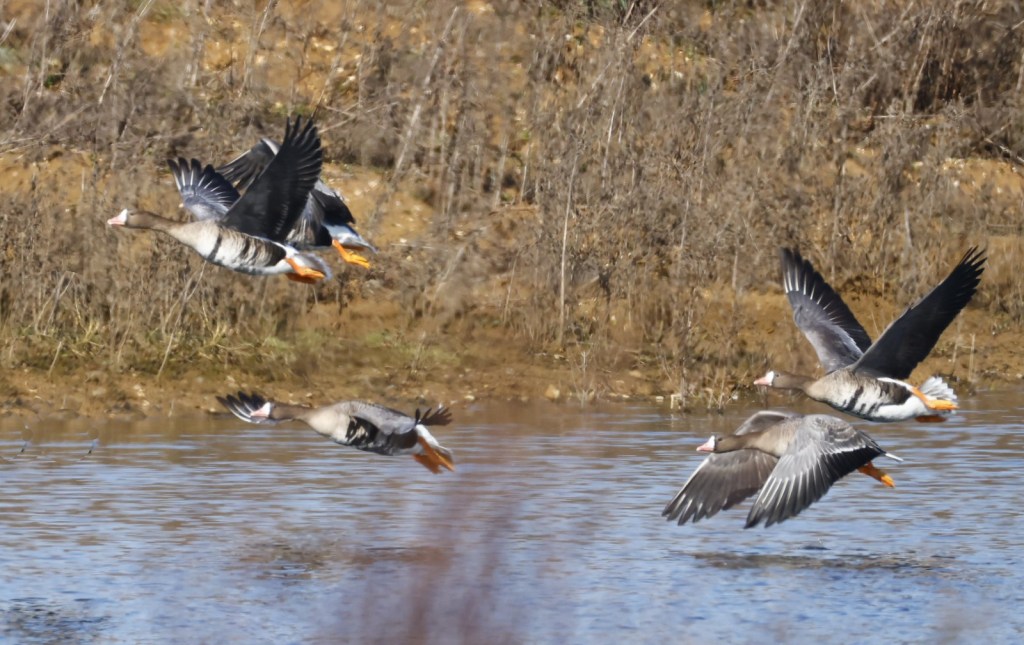 Before the first of these though, the usual scattering of wildfowl served as a reminder that we’re not quite done with winter, yet. All present and correct, then, were the geese we have been lucky to pull in and retain over the past few months, starting with the Pink-footed Goose with Greylags in the Cogenhoe Mill/Earls Barton GP area, which saw another week out there, along with the seven White-fronted Geese – the latter still present on 7th. The two longest staying Whitefronts also remained at Ravensthorpe Res until at least 5th.