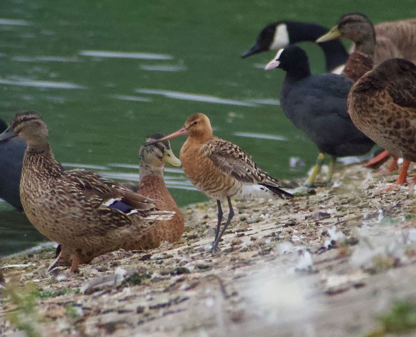 Following their partly successful breeding attempts, the sad departure of the Avocets from Earls Barton last week left us with a trickle of commoner migrant waders alongside those a little more scarce. A Whimbrel turned up at Pitsford Res on 28th, followed by two more flying south-west over the dam there on 2nd. But the week was marked by a glut of Black-tailed Godwits across six localities, Pitsford maxing out with a mobile flock of approximately twenty-five on 1st, following one there on 28th. Clifford Hill produced the next highest numbers with five on 29th, fourteen on 1st and one on 3rd, while five were all equally brief visitors to Stanford Res on 2nd, Thrapston GP’s Titchmarsh NR held two on 3rd, when one also visited Summer Leys LNR. Finally, one made landfall at Daventry CP at the week’s end, on 4th.