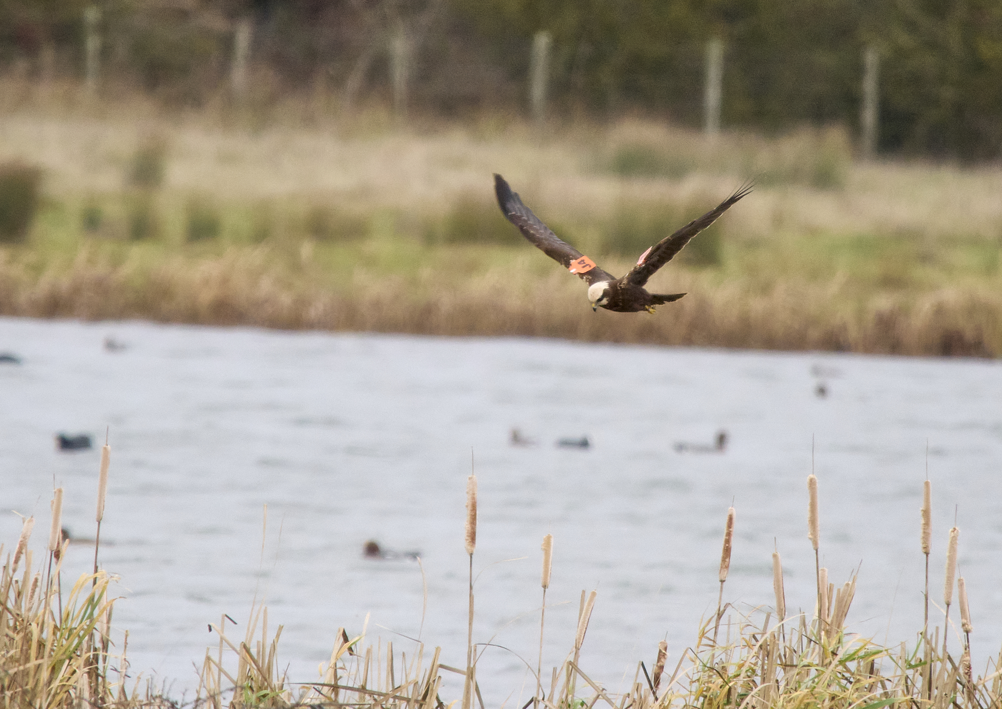 Two Marsh Harriers were present this week, one of which ‘has history’, so to speak. The first was mobile about the Ditchford GP/Stanwick GP area, initially seen close to Ditchford’s Chester House Lake on 13th, then in flight over Irthlingborough on 14th before appearing at Stanwick the next day. In addition to this, one with obvious orange wing-tags, labelled ‘J4’, arrived at Summer Leys LNR on 17th, remaining there until 19th.