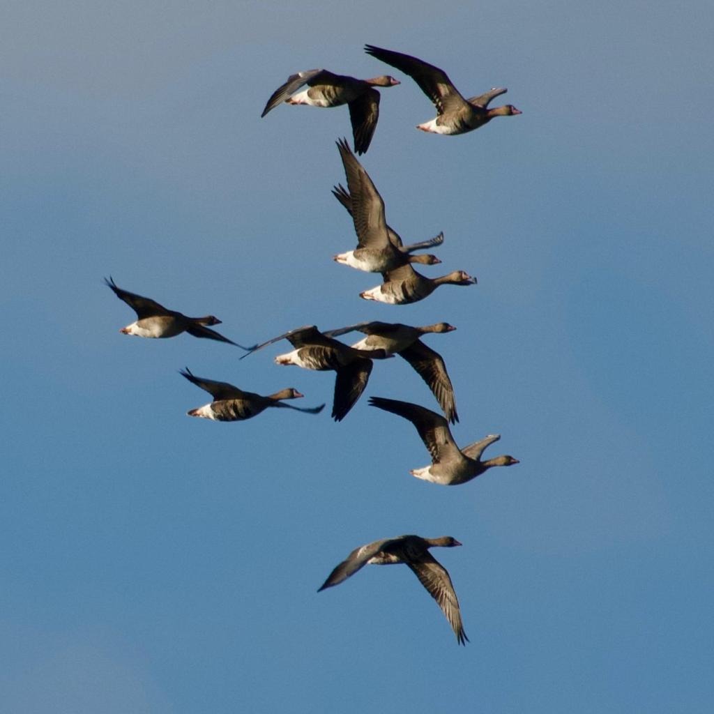 Taking a back seat in terms of comparative rarity, but not to be sniffed at, White-fronted Geese made their presence strongly felt, beginning with the arrival of an awesome flock of fifty-six at Stanford Res on 24th. This was followed by a total of thirty-one flying north-east over Irthlingborough Lakes & Meadows NR in small groups during a fifteen-minute period on the same date, on which a dozen appeared at Blatherwycke and seven were also found at Pitsford, at least four of which remained on 25th. More were to come on the latter date, Clifford Hill GP producing eleven, while Stanford retained its fifty-six through to the 26th and the final day of the period also saw twenty-one at Ringstead GP, fourteen at Blatherwycke, at least six at Clifford Hill and two at Hollowell Res.