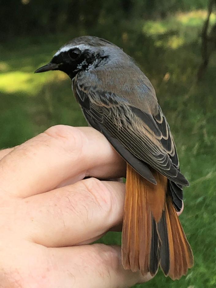 Adult male Common Redstart, Stanford Res, 27th August 2019 (Chris Hubbard). Largely black face with prominent white supercilium, combined with greyish-fringed greater coverts age this as an adult male.Adult male Common Redstart, Stanford Res, 27th August 2019 (Chris Hubbard)Male Common Redstart, presumed first-winter, Stanford Res, 27th August 2019 (Chris Hubbard). Rather dull black facial area with considerable white flecking, along with obscure supercilium point to first-winter.First-winter male Common Redstart, Stanford Res, 27th August 2019 (Chris Hubbard). Same comments apply as above. Also thickly buff-bordered juvenile greater coverts, with adult-like inner one or two grey-edged feathers age this bird.First-winter female Common Redstart, Stanford Res, 27th August 2019 (Chris Hubbard). A tricky one to age. Looks like an adult but the ringers have aged it as a first-winter.First-winter female Common Redstart, Stanford Res, 27th August 2019 (Chris Hubbard)Male Common Redstart, probably first-winter, Harrington AF, 25th August 2019 (Alan Coles)