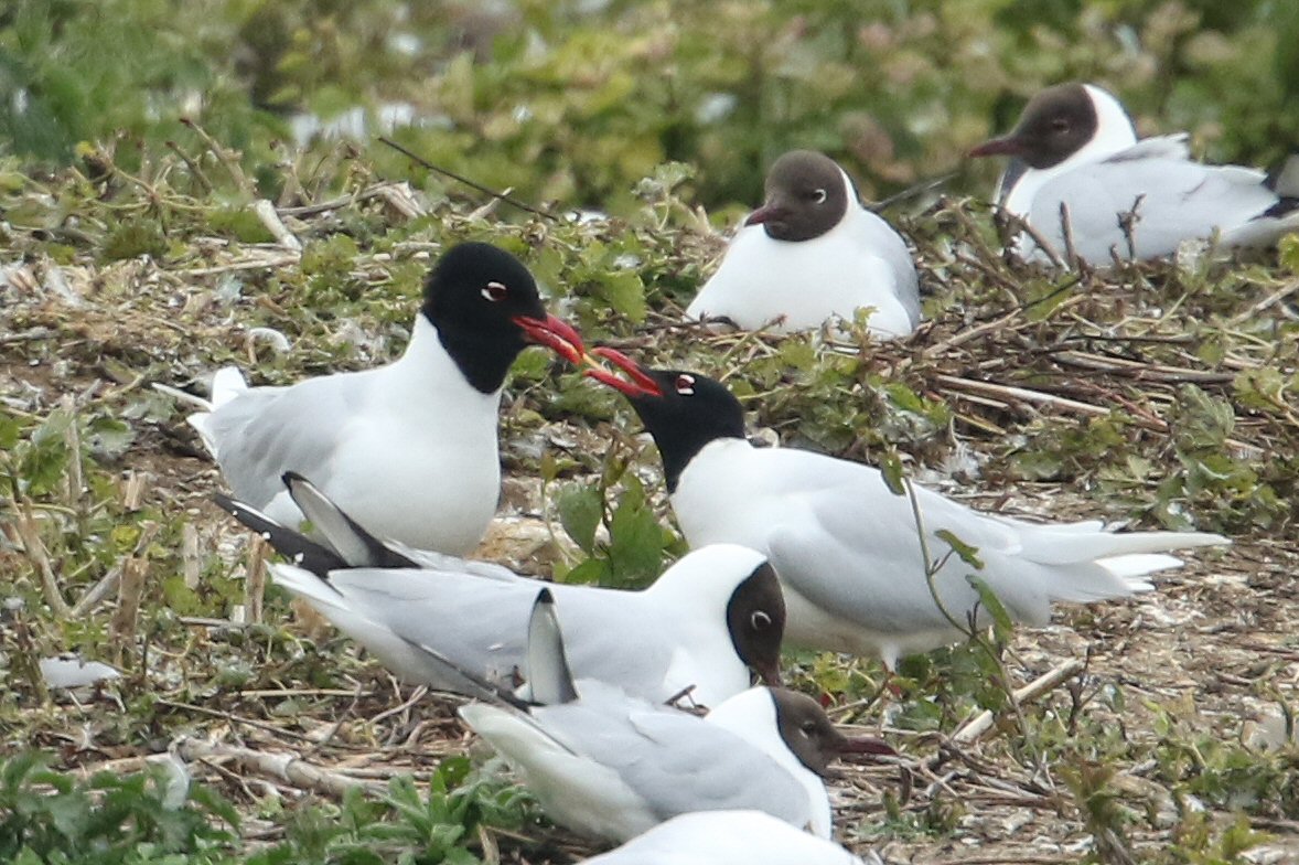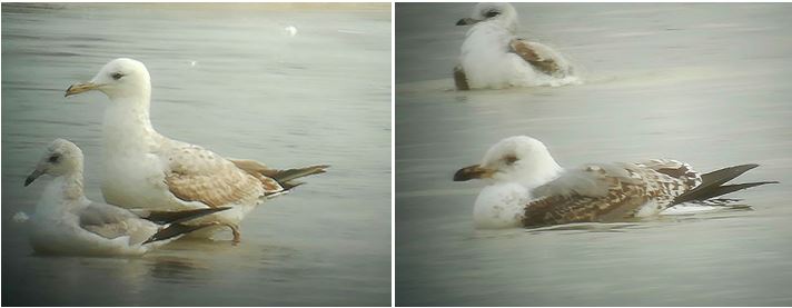 The upperparts and upper wings were darker than normal ‘western’ Caspian and as dark as nearby Yellow-legged Gulls, the legs dull/pale yellowish, flesh-coloured feet, it showed extensive black on the outer primaries while three inner primaries had been replaced with new ones which were still growing.