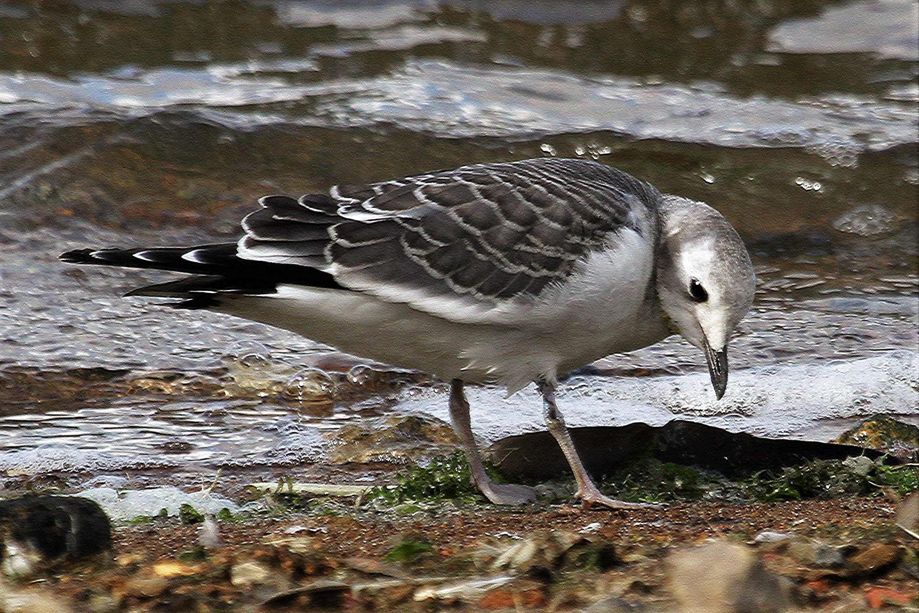 It was only after later examination of the images I managed to obtain that nagging doubts about the bird’s identity crept in. Although in the first three images reproduced here the bird appears large and ‘mean-looking’ (= Glaucous) in the last of the series of images the true proportions are visible. It lacks the truly hefty proportions of Glaucous Gull, appears attenuated with a long primary projection and has a more rounded head and relatively small, short bill, bearing a resemblance to a Common Gull. This all adds up to it being an Iceland Gull with the size and sometimes flattish, sloping forehead suggesting a ‘butch’ male.