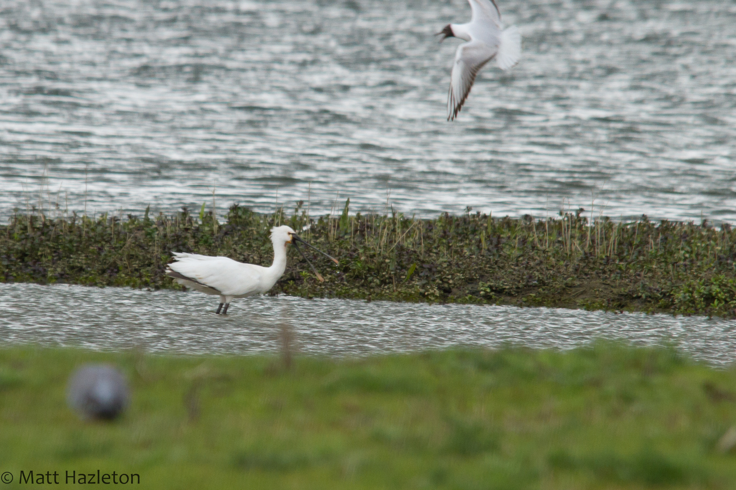 It was just before two o’clock this afternoon when Matt Hazleton picked up a Spoonbill flying in from the north-east before arriving on the main lake at Summer Leys. It landed in the Brayshaw’s Bund/Wader Bay area and seemed settled, giving Matt the opportunity for a few photos before he emailed me to let me know.