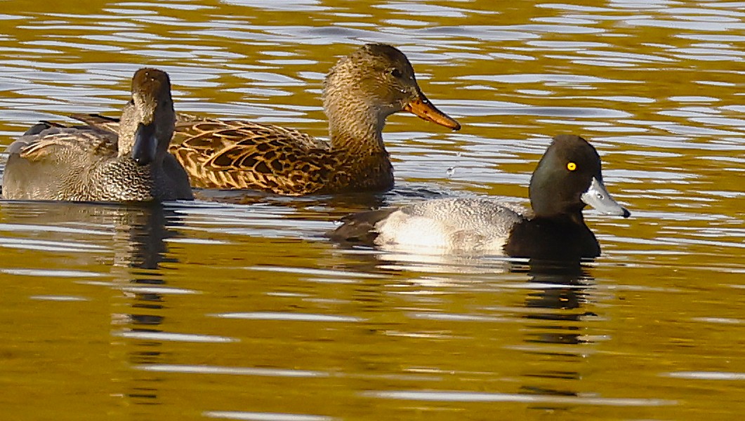 Now one of fifty present in Britain and Ireland during the past week, the drake Ring-necked Duck notched up another seven days at Thrapston GP’s Town Lake, bringing its time there to almost three weeks, while the first-winter drake and female Greater Scaups also remained at the above locality throughout the period.