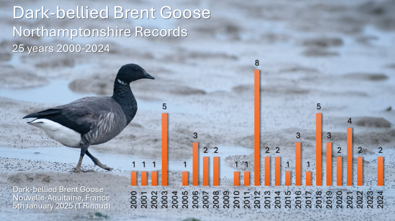 Returning to more open country, numbers of Stonechats were down on recent totals with three at Hollowell on 12th, duos at Neville’s Lodge on 7th and in both the Brampton Valley and Upton CP on 10th, while singles were to be found at Clifford Hill on 6th and Pitsford on 10th.