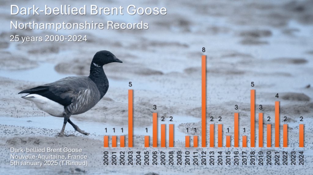 And, in almost a carbon copy of the week before, single Marsh Harriers were again at Summer Leys on 6th, at Thrapston GP’s Titchmarsh NR on 10th and over Irthlingborough heading toward Ditchford GP on 12th, while the Brampton Valley ‘ringtail’ Hen Harrier put in another appearance between Cottesbrooke and Hanging Houghton on 11th.