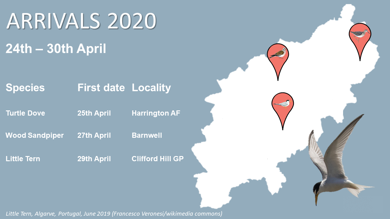 On 27th, twelve were at Stanwick and one visited Summer Leys LNR, followed by two at the latter locality on 30th. The 2nd, though, saw a flock of approximately forty drop into Stanwick GP for some 35 minutes before continuing their journey south, with the same day seeing five at nearby Ditchford GP and one, plus three more, at Summer Leys. Singles then visited Pitsford, Stanwick and Summer Leys the following day, with the latter site producing a Greenshank on 27th.