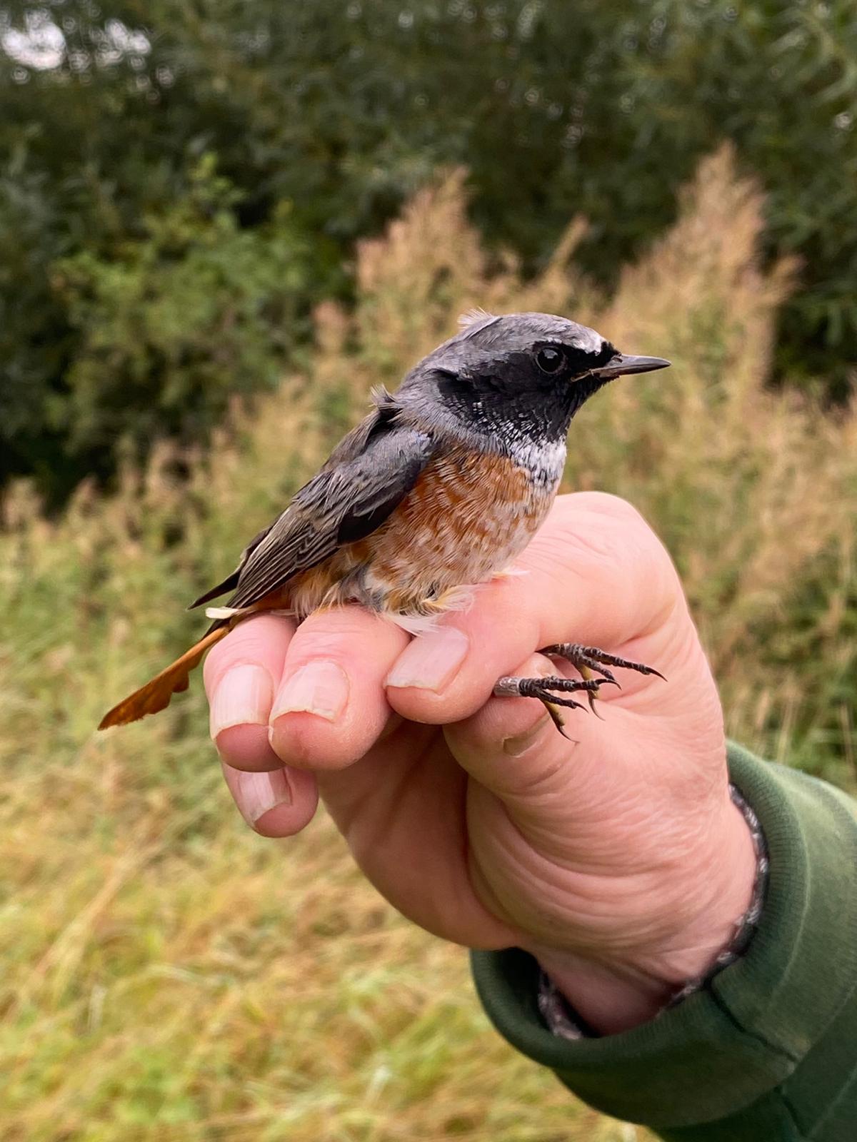 Black Redstart, Borough Hill, 1st October 2020 (Mike Alibone). Yellow gape flanges visible on the open bill age this bird as a juvenile.Common Redstart, Stanford Res, 28th September 2020 (Theo de Clermont)